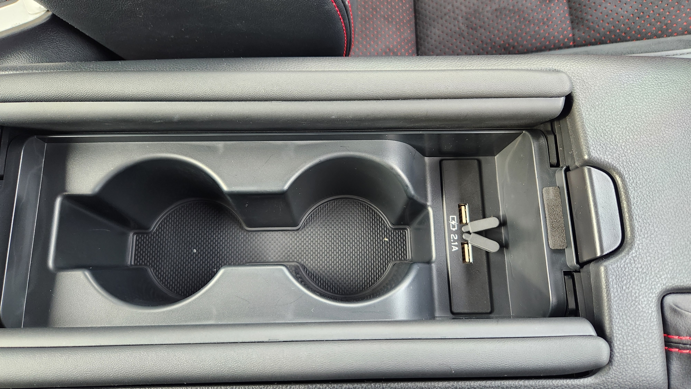 アームレストには格納式のカップホルダーとUSB電源が2ポートついています!