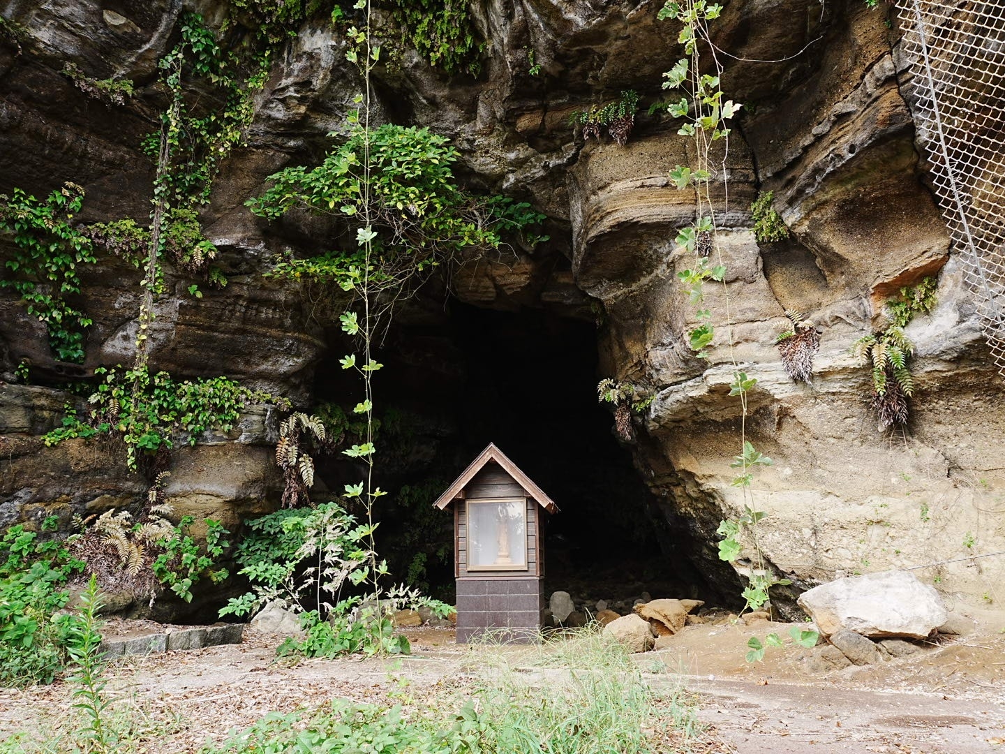 ▼観音崎公園東側の海沿いの道を歩いていると、観音様が祀られている海蝕洞穴(かいしょくどうけつ)が見られます。詳しくはコチラ→観音崎プロジェクトの会