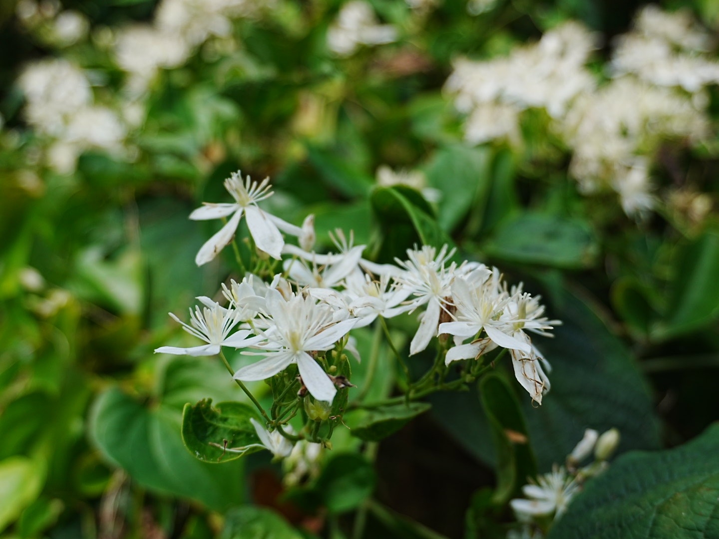 ▼観音崎の海岸沿いで多く見られる「センニンソウ」。とてもキレイ♪ でも葉や茎に毒アリ。取り扱い注意です。