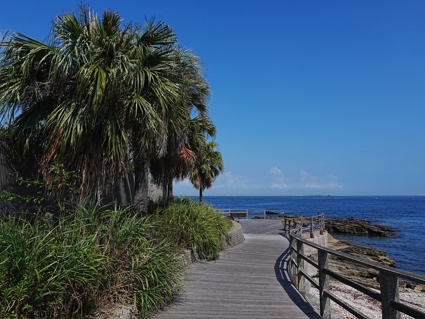 ▼いったん観音崎園地まで戻り、今度は海沿いの「観音崎ボードウォーク」を歩き、強力なパワースポットとして知られる"走水神社"へ向かいます。