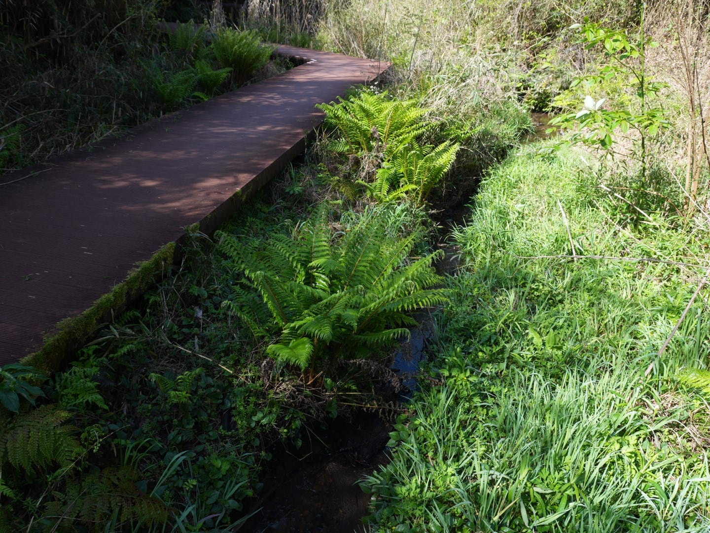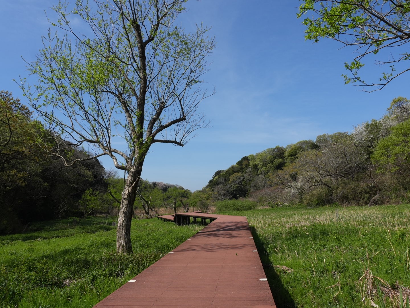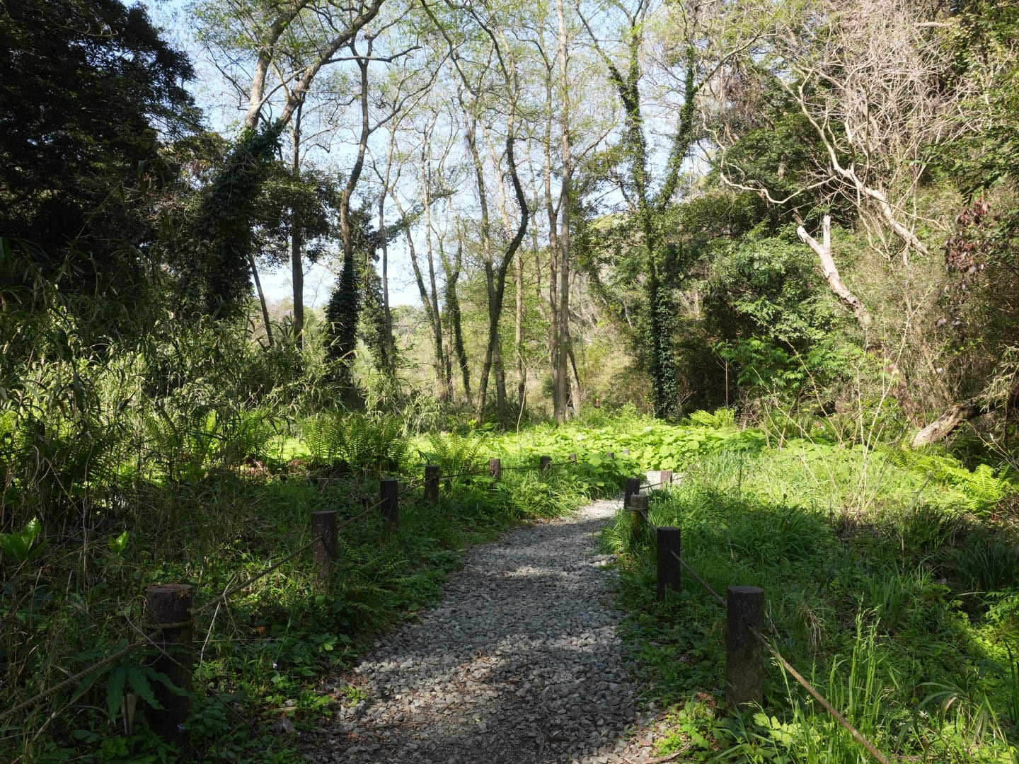 その遊歩道を使って、新緑の森から湿地帯、干潟、