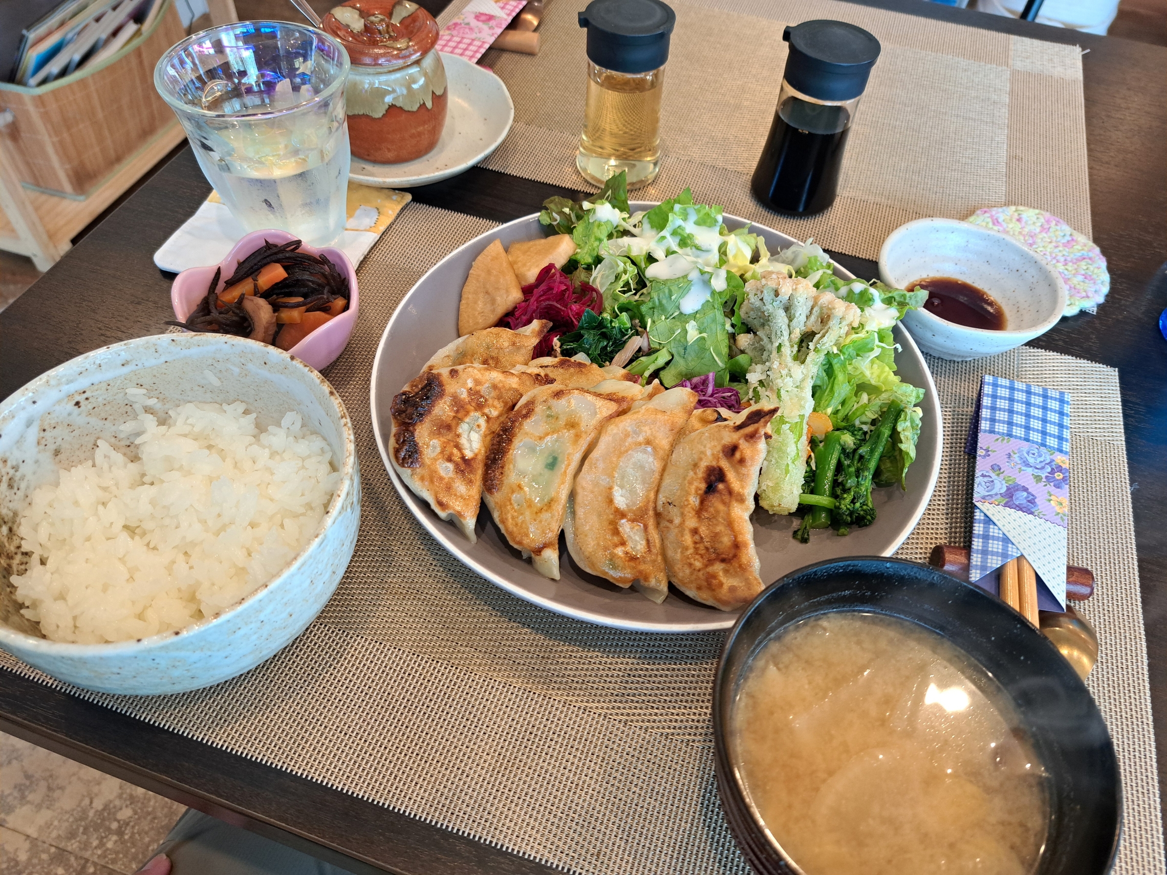 ▲"三崎"というとマグロですが、今回は趣向を変えて、三崎町の「うーぼん家」で、三浦の野菜をふんだんに使ったサラダが添えられた「餃子定食(デザート付き)」をいただきました。本当は唐揚げが自慢だそうですが、最近は餃子が大人気だそうです。