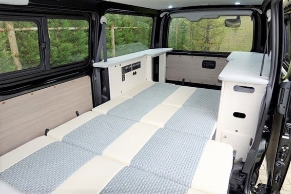 ハイエースバンをベース車両としていながらも、商用車を感じさせないおしゃれで快適性の高い専用の後席シートが設定されています。