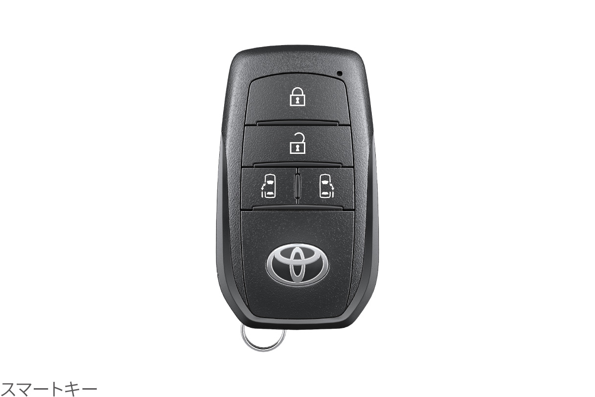 通常のスマートエントリー+プッシュスタートシステムの機能に加えて、予約ロック機能を設定。パワースライドドアの自動クローズ中にフロントドアハンドルのセンサーに触れるだけでクローズ後の施錠予約を完了。スライドドアが閉じきるのを待たずに、クルマから離れられます。
