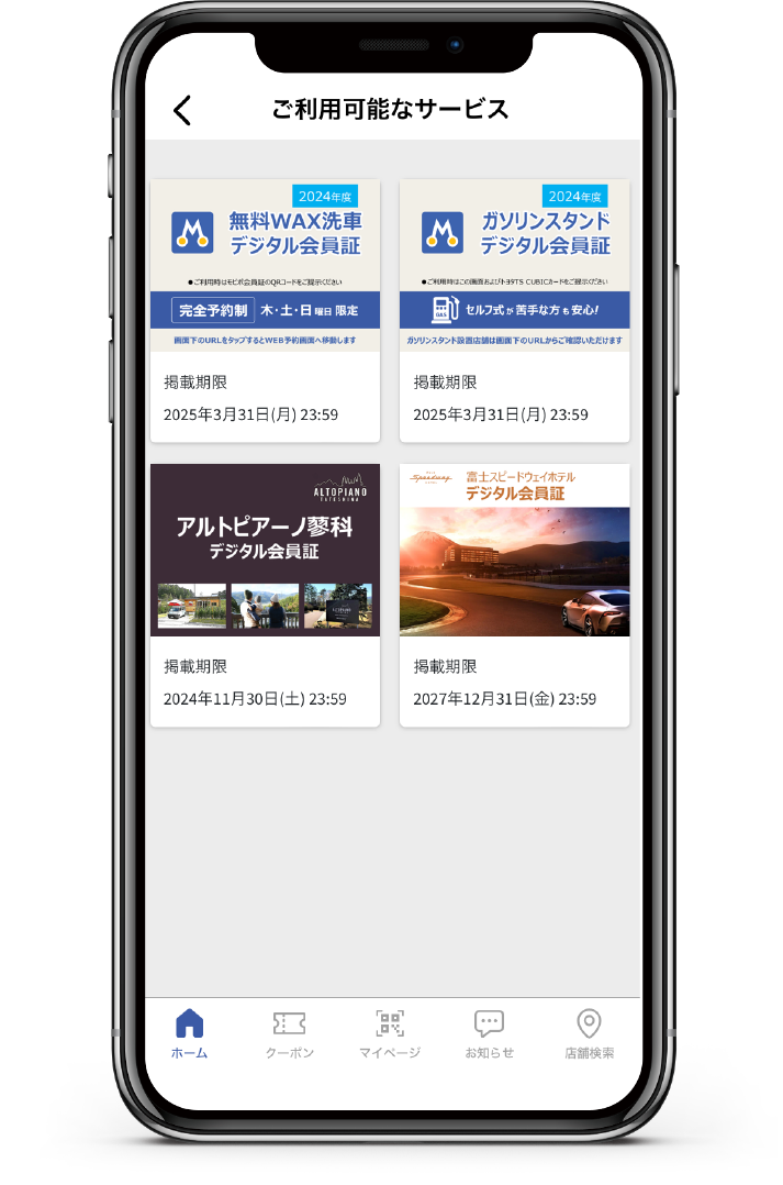 ガソリン給油など、クーポン交換を行う場合はここから。