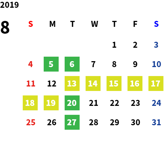 営業日カレンダー