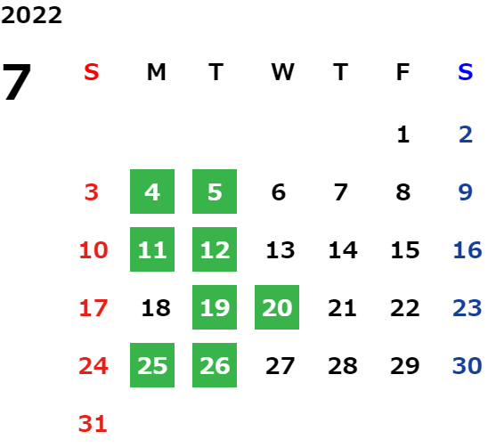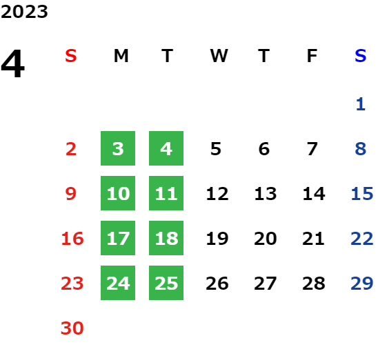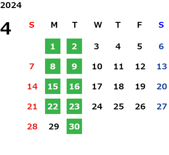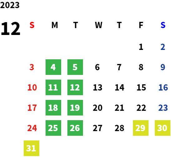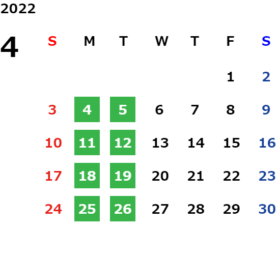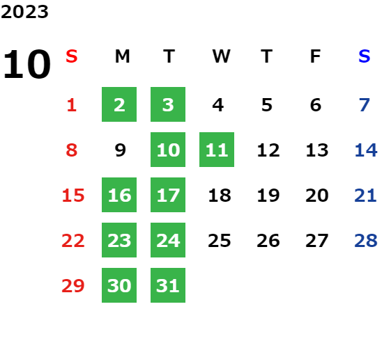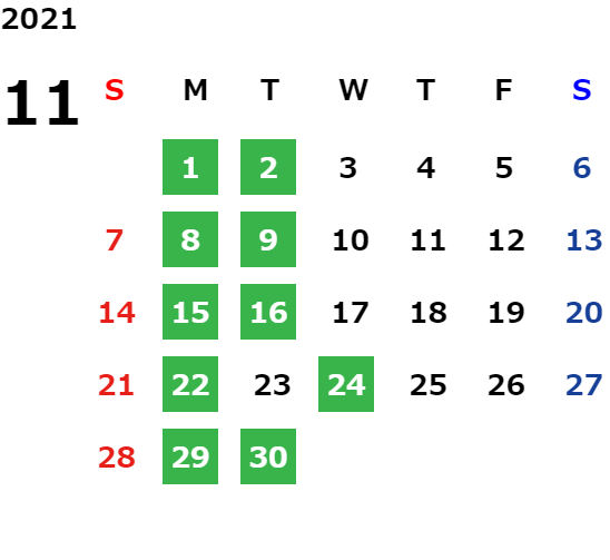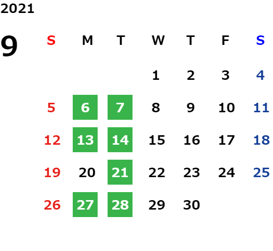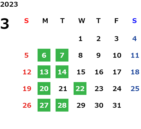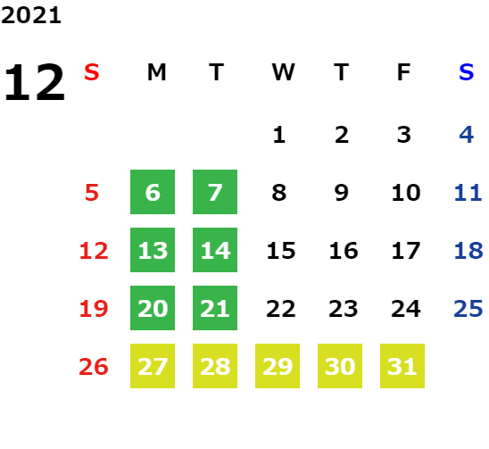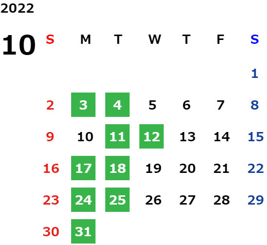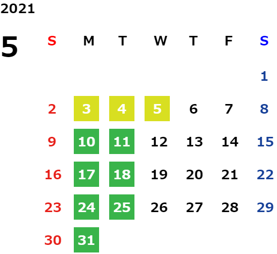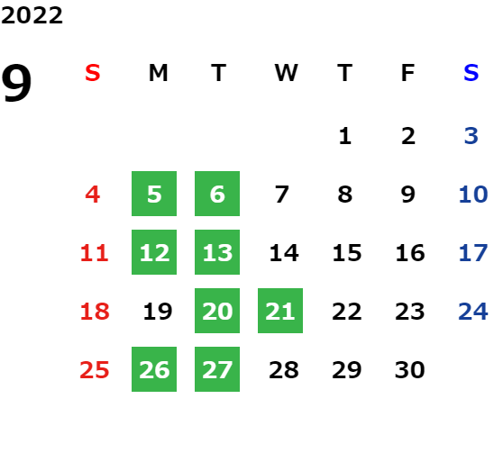 営業日カレンダー