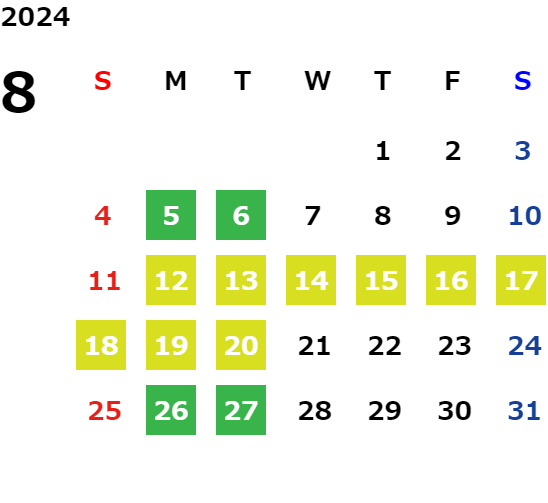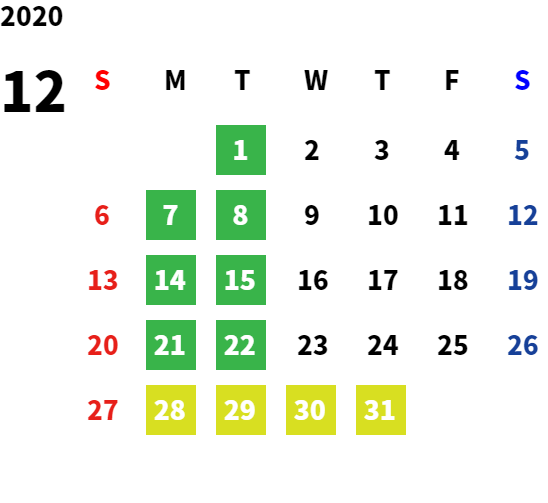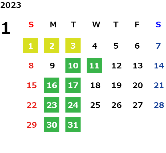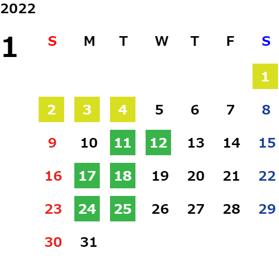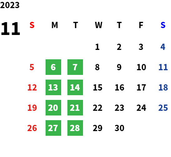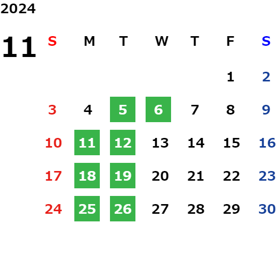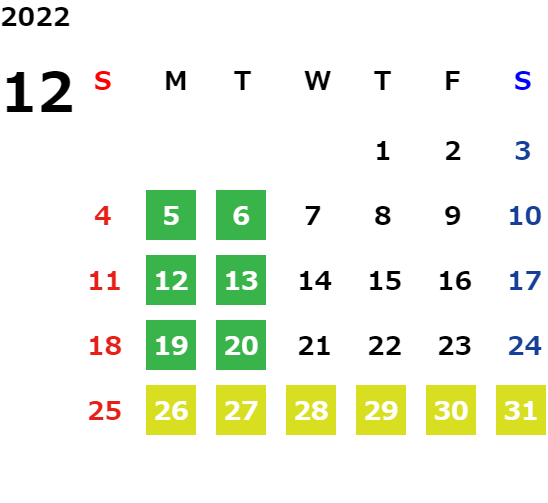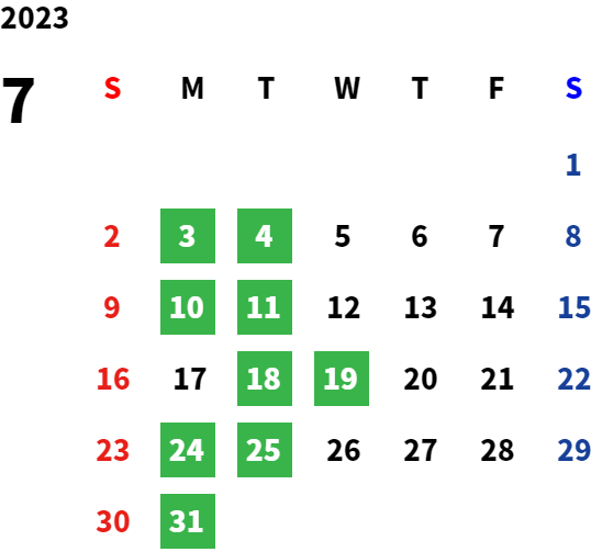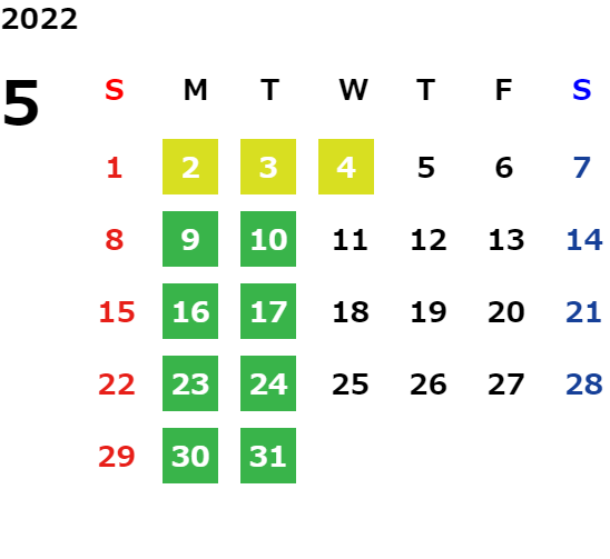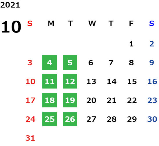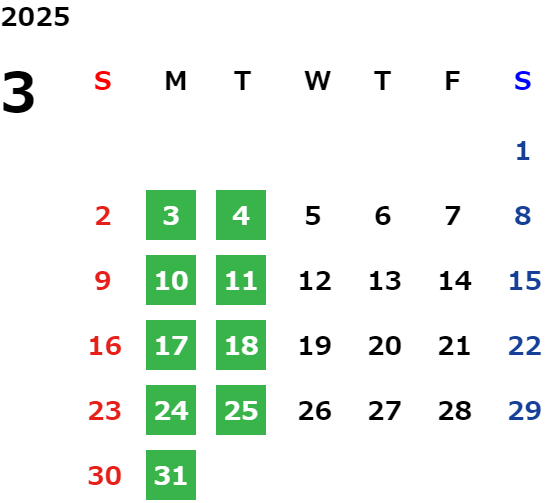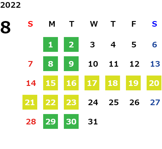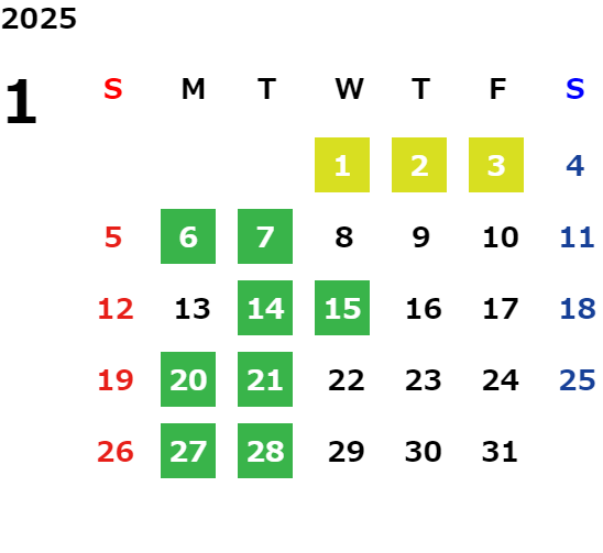 営業日カレンダー