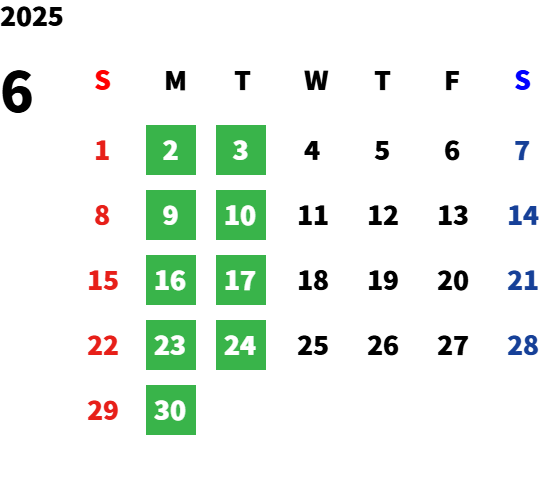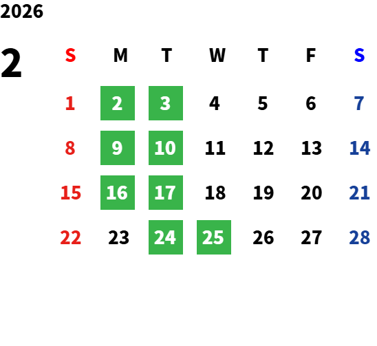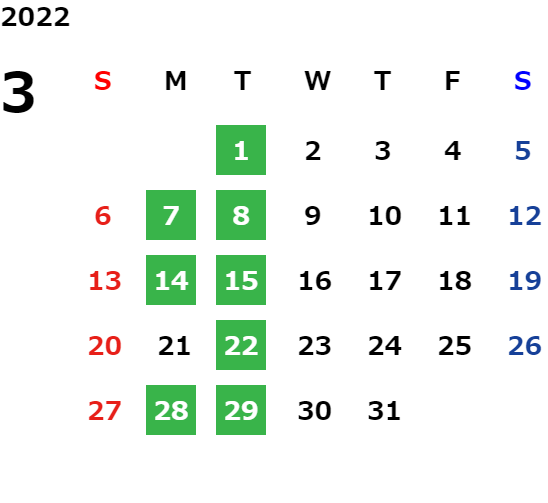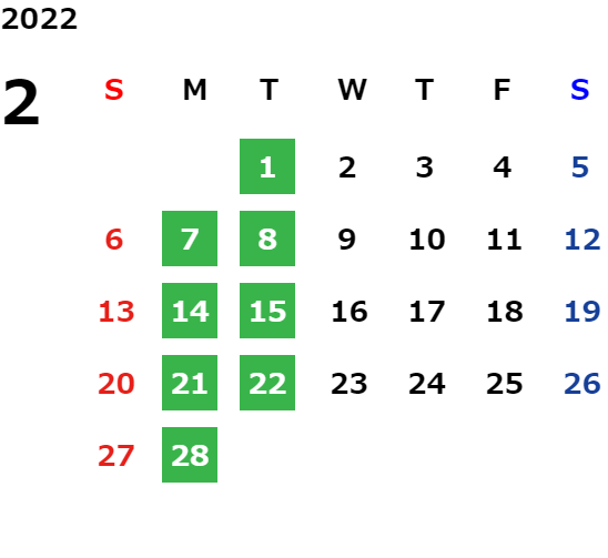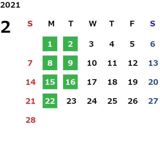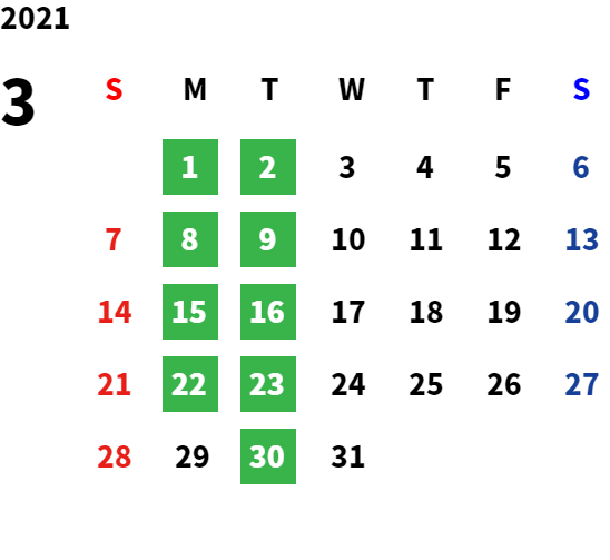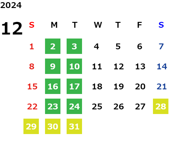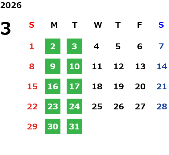毎週月曜日・火曜日 ※除く祝日